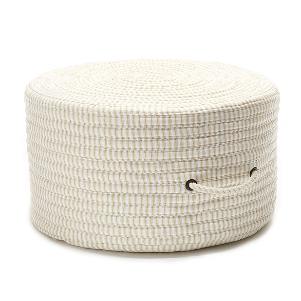 Soft tones in a cotton-blend ticking fabric give this pouf a simple and classic style