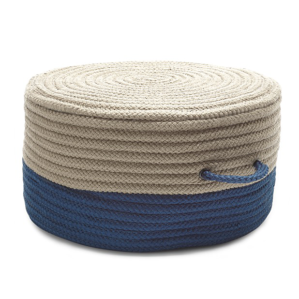 A pouf with textured natural tones against a pop of color are ideal for adding style and interest to any living space
