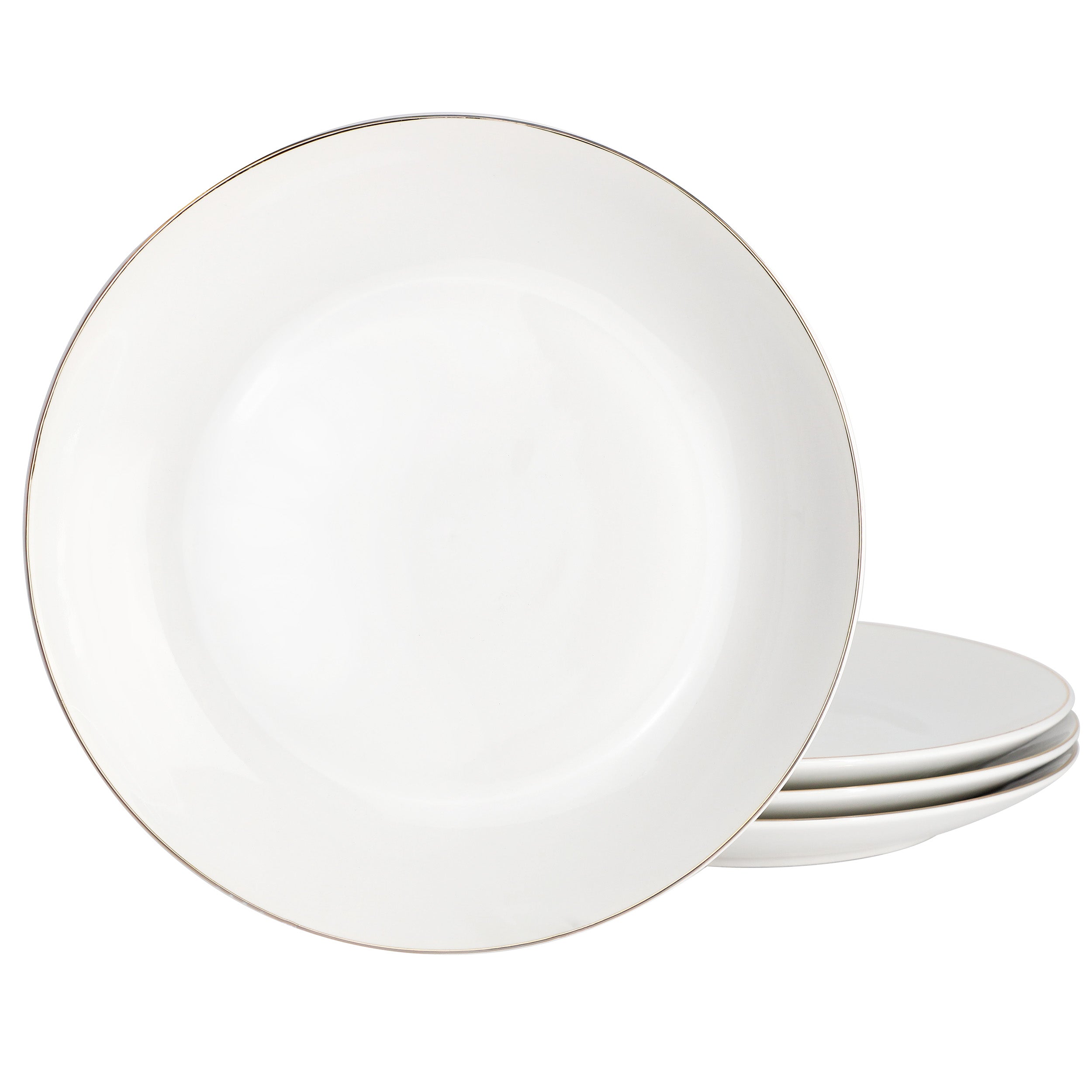 Gibson Home Ogalla 4 Piece Fine Ceramic 10.5 Inch Dinner Plate Set in White with Gold Rim