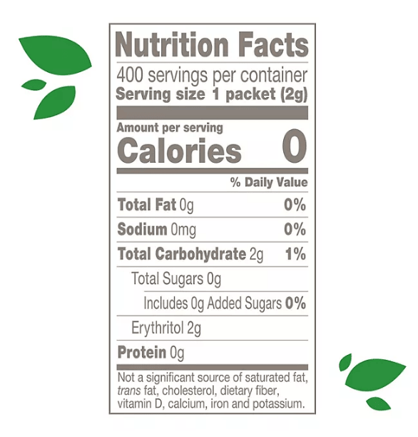 1.Truvia Original Calorie-Free Sweetener from the Stevia Leaf Packets 400 ct. box of packets Sugar free and keto friendly No artificial sweeteners Suitable for people with diabetes