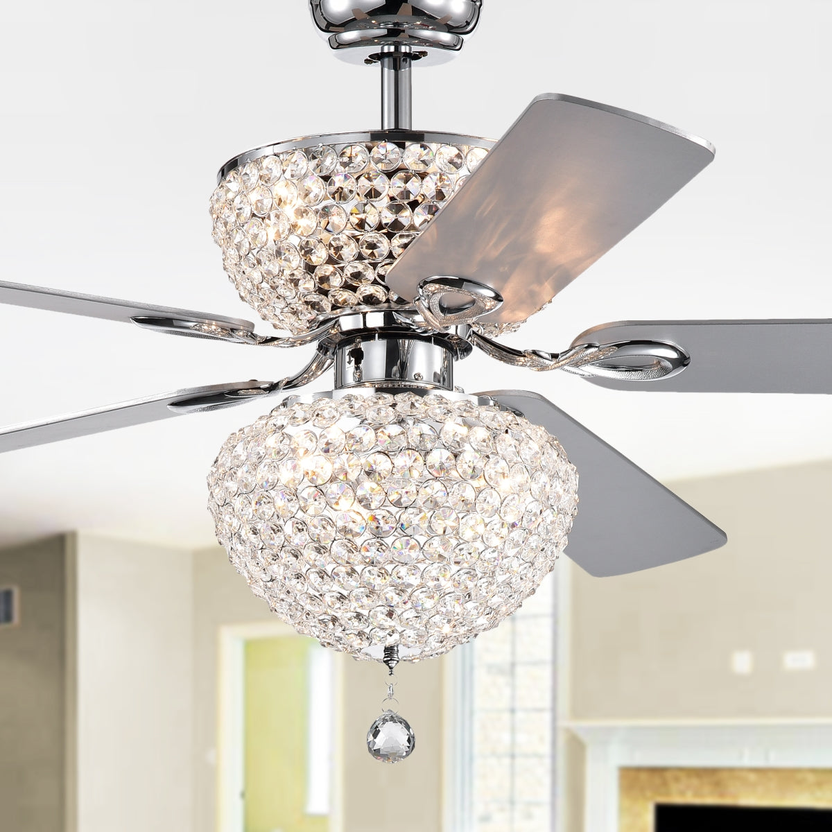Warehouse of Tiffany CFL-8176REMO-CHD Swarana Dual Lighted Ceiling Fan with Crystal Shades Chrome