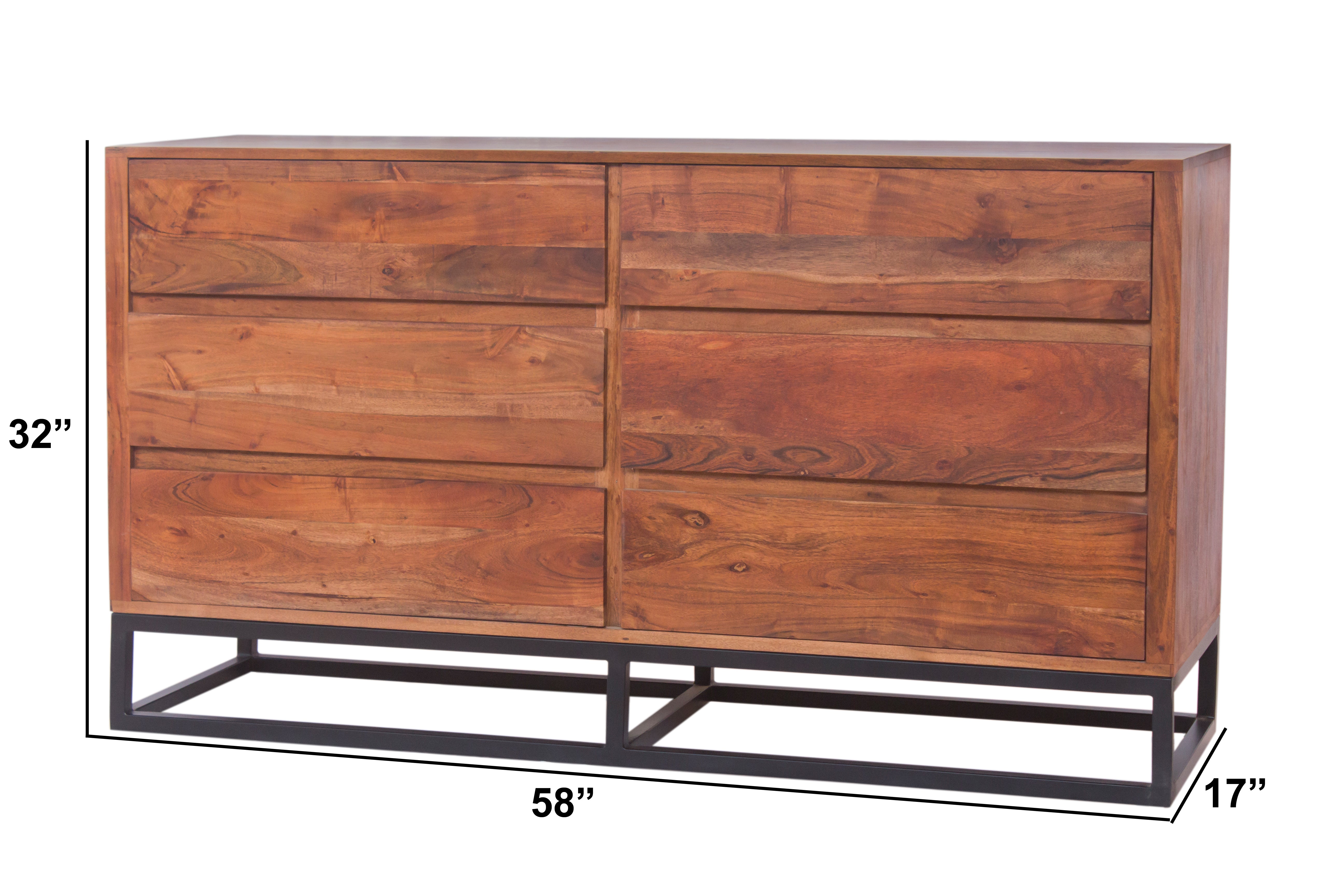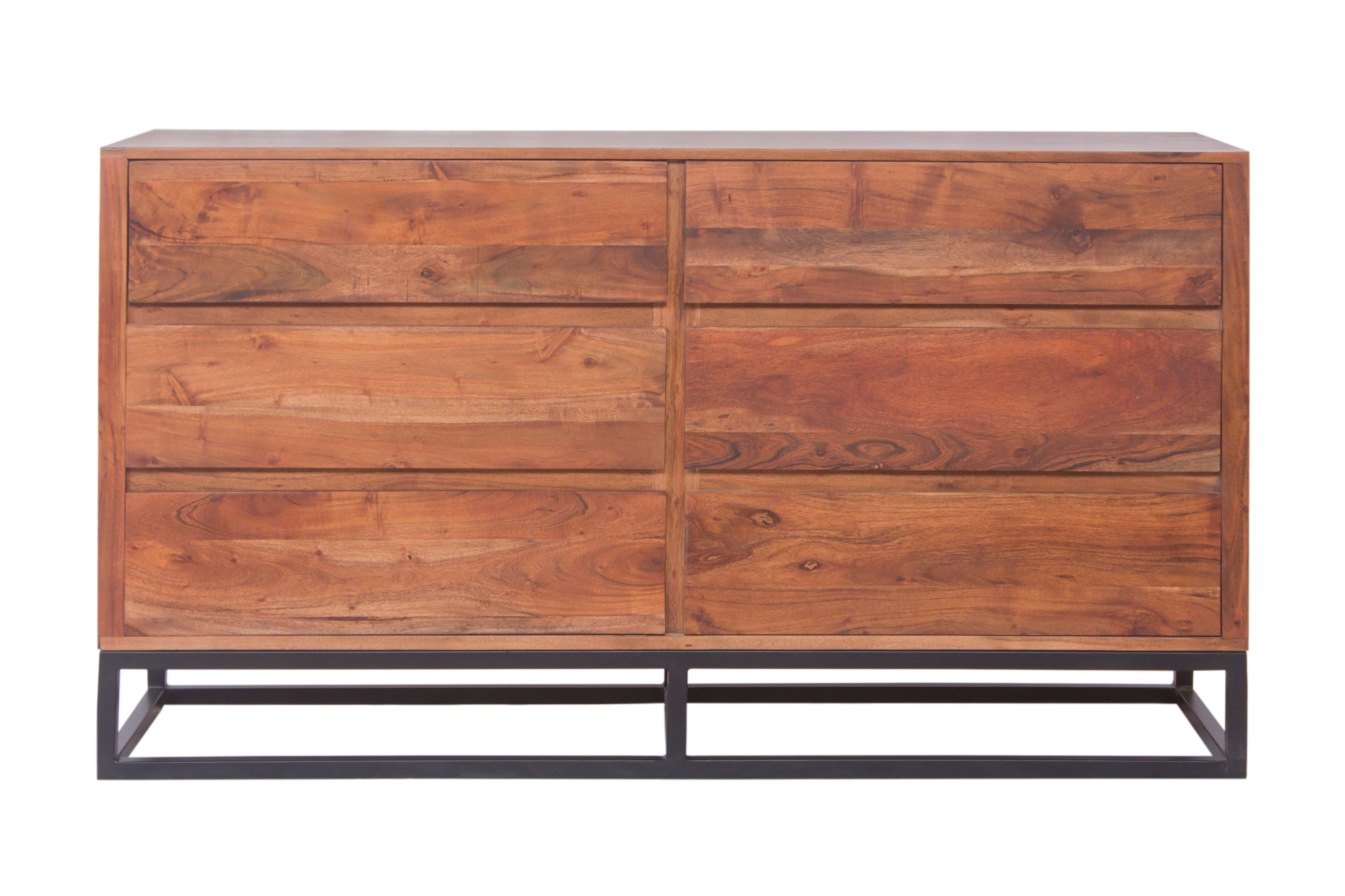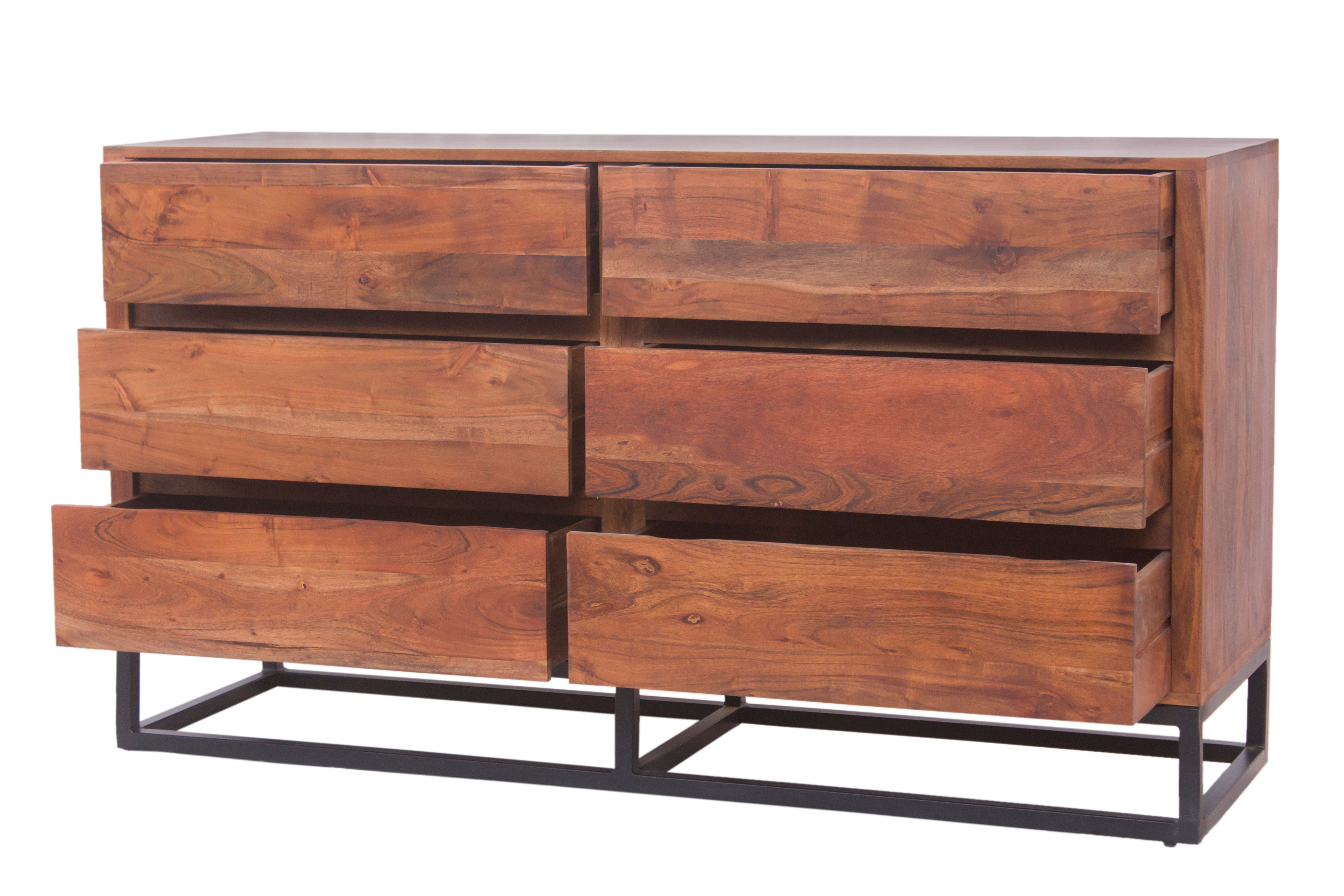 An amazing dresser designed with the vision of providing spacious storage. It showcases a blend of great design along with durable walnut brown acacia wood, and a lightweight yet sturdy metal frame. Featuring six drawers facilitated with wooden channels, it offers great storage for all your necessary items like clothes, jewelry, and other knick-knacks. You can also use this dresser as a display unit as it offers great space for decorative items and can easily accommodate a TV of 50 inches.