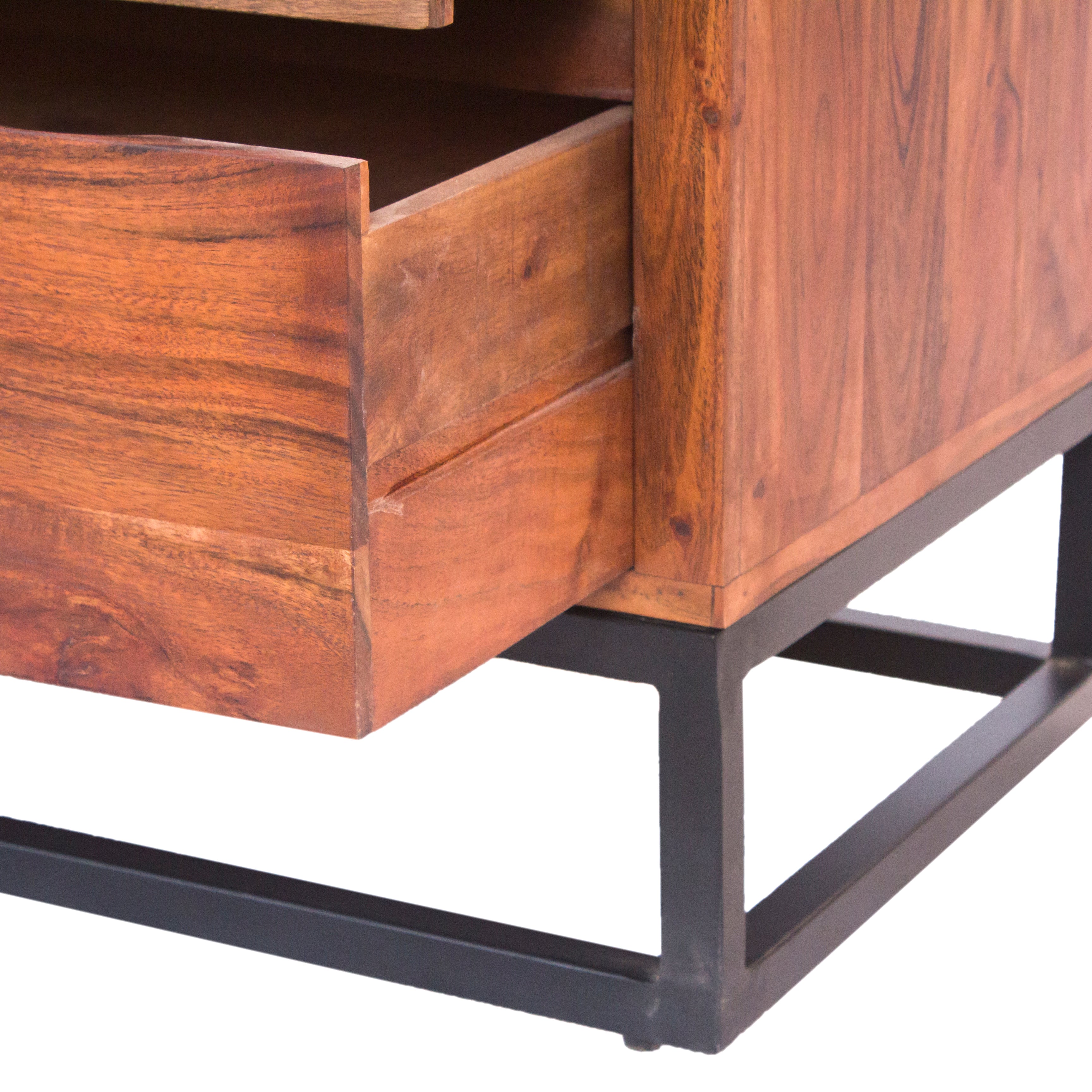 Modern Acacia Wood Dresser or Display Unit With Metal Base Walnut Brown and Black UPT-182996 - The Urban Port