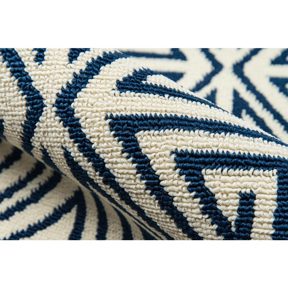 This elegant indoor/outdoor all-weather area rug offers everything you need to complete the ultimate outdoor room. Repeating stripes, diamonds, trellis and arabesque shapes meet nautical icons like ropes, anchors and waves, adding a luxe layer to all interior and exterior living spaces, including patios, porches and pool decks. Durable power-loomed construction ensures each decorative floorcovering transitions beautifully from season to season while the vibrant color palette and enduring polypropylene fibers offer endless design possibilities indoors and out. Product Specs: Product Height: