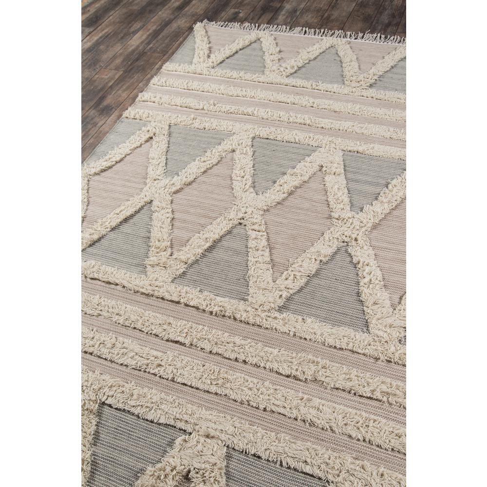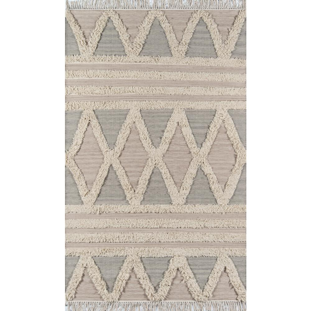 With tribal designs inspired by the desert, this area rug captures the essence of Southwestern design. Each decorative floorcovering presents a fresh take on centuries-old geometric tapestries, with alternating weaving techniques that develop depth and dimension throughout the diamond trellis pattern. Hand woven from 100% natural wool threads, the top and bottom of each rug gets a touch of texture with fringed tassels.
