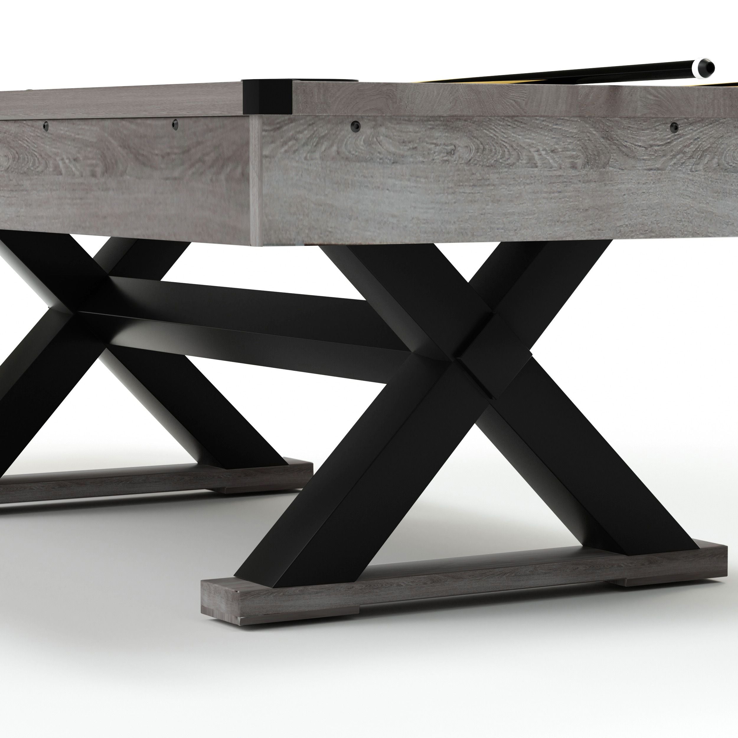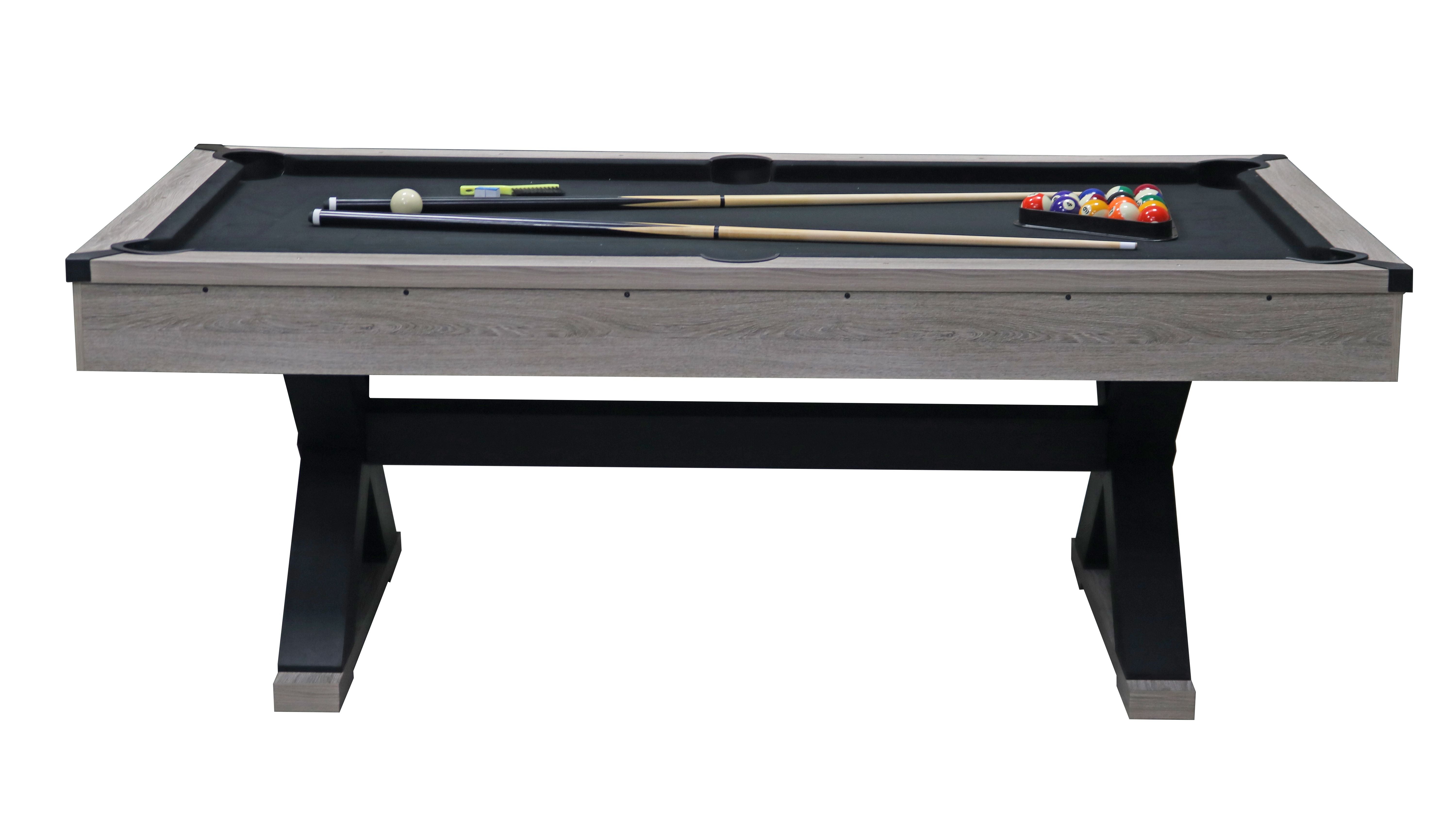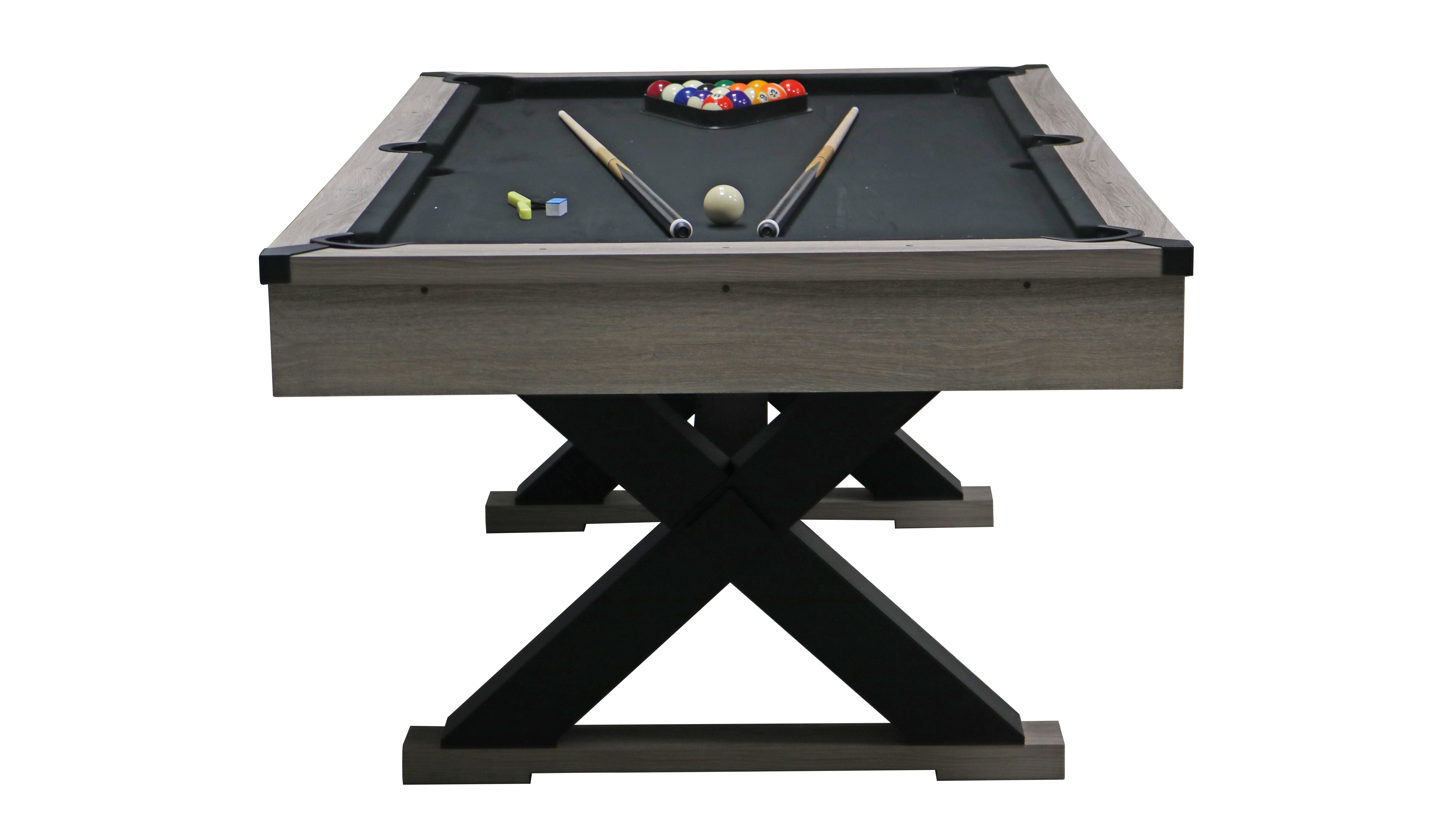 84-inch rustic pool table, simple industrial style, with billiard balls, cues, pool cue chalk, cleaning brushes, X-shaped table legs have a unique design, finish black cloth more advanced,84.1"L x 46.5"W x 32"H