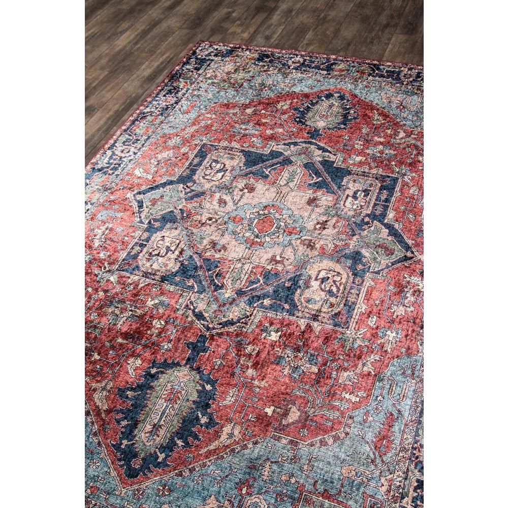 Available in an array of ancient patterns, this traditional area rug collection adds timeless integrity to interior floors. Regal shades of red, blue, ivory and gold are an invitation to explore the exquisite tracery, flower and central medallion shapes essential to Serapi and Tabriz carpets. Resilient polyester threads preserve the heritage of Persian designs for decades to come with an innovative fiber that’s luxe and long lasting.