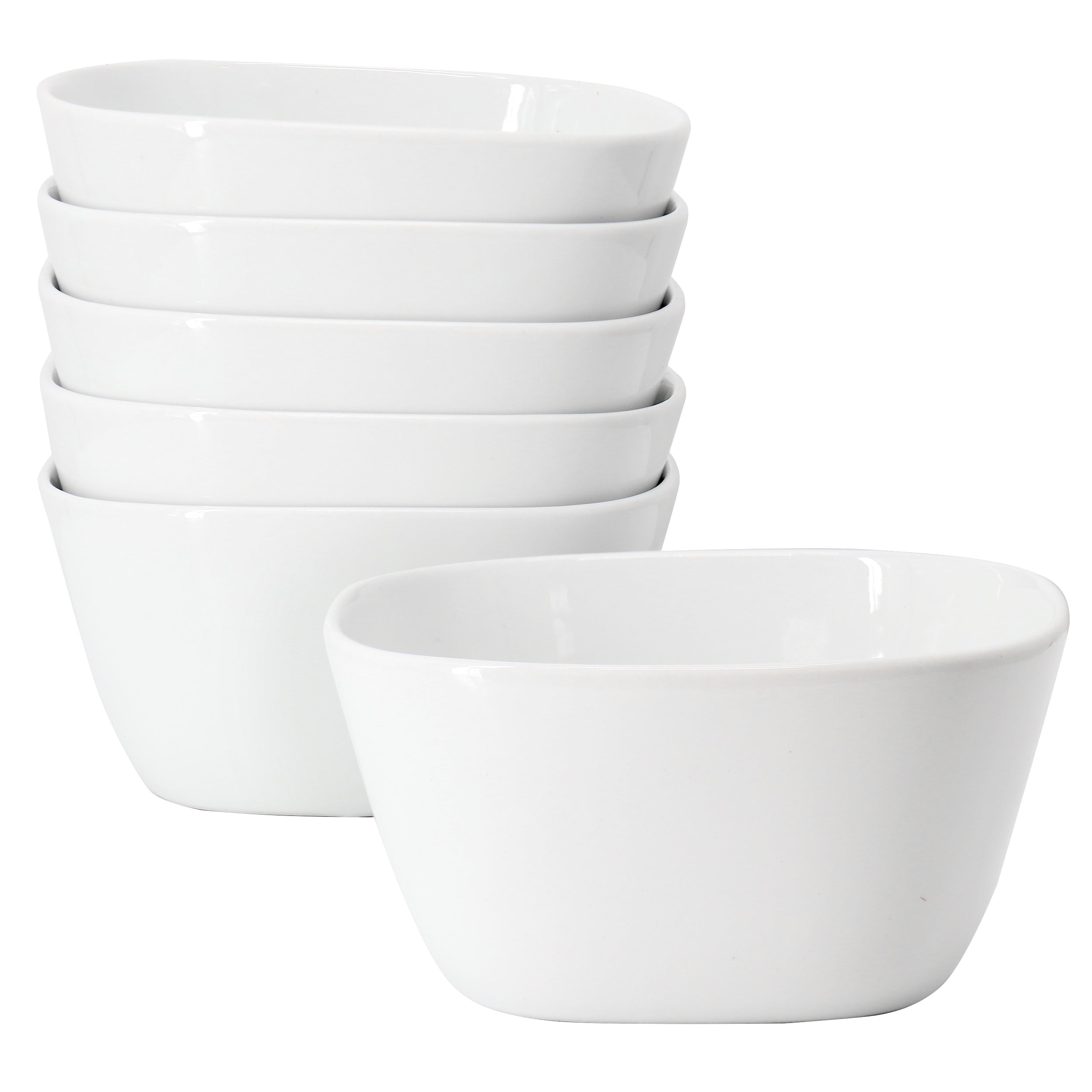 Our Table Simply White 6 Piece 6 Inch Porcelain Soft Square Cereal Bowl Set