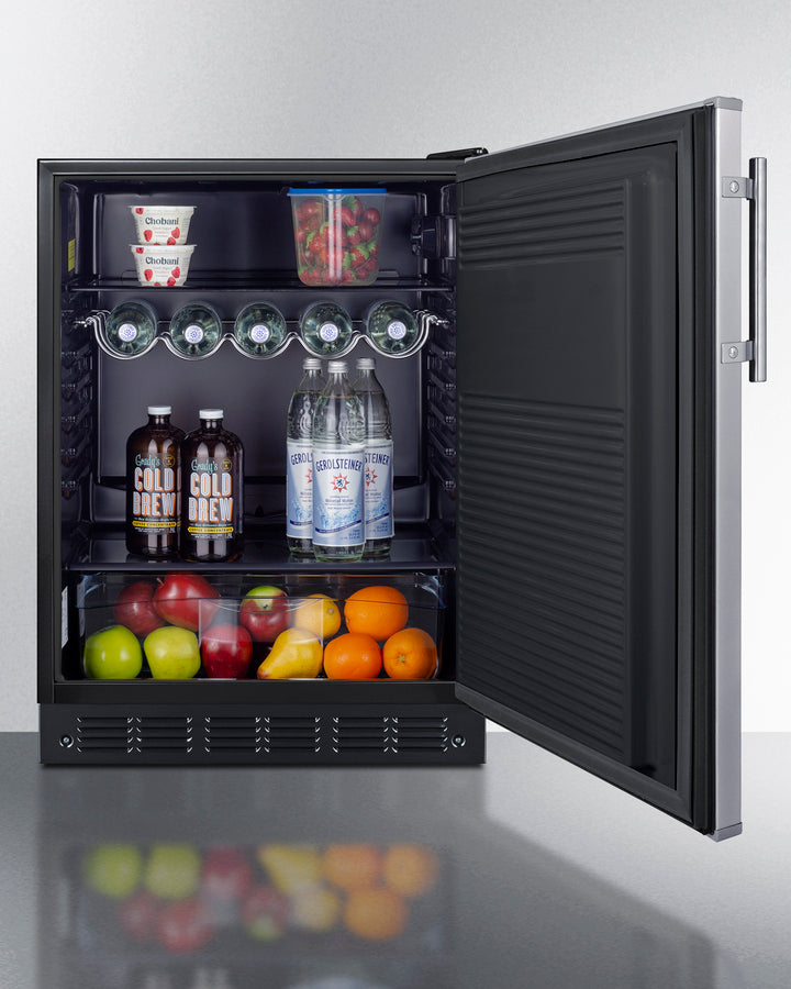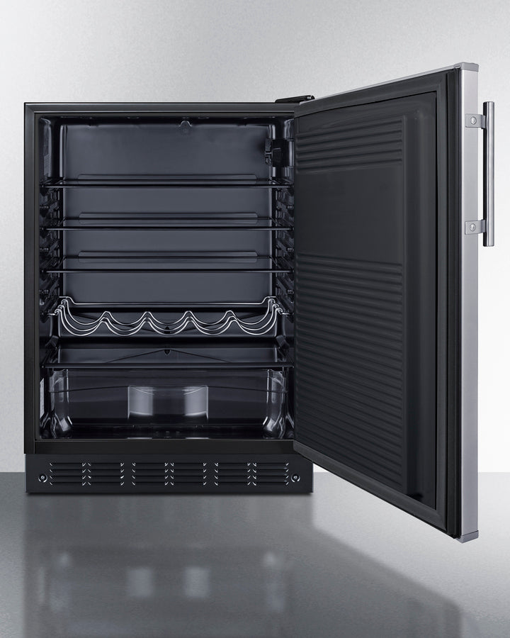 Removable scalloped steel shelf lets you keep wine and other bottles stored horizontally