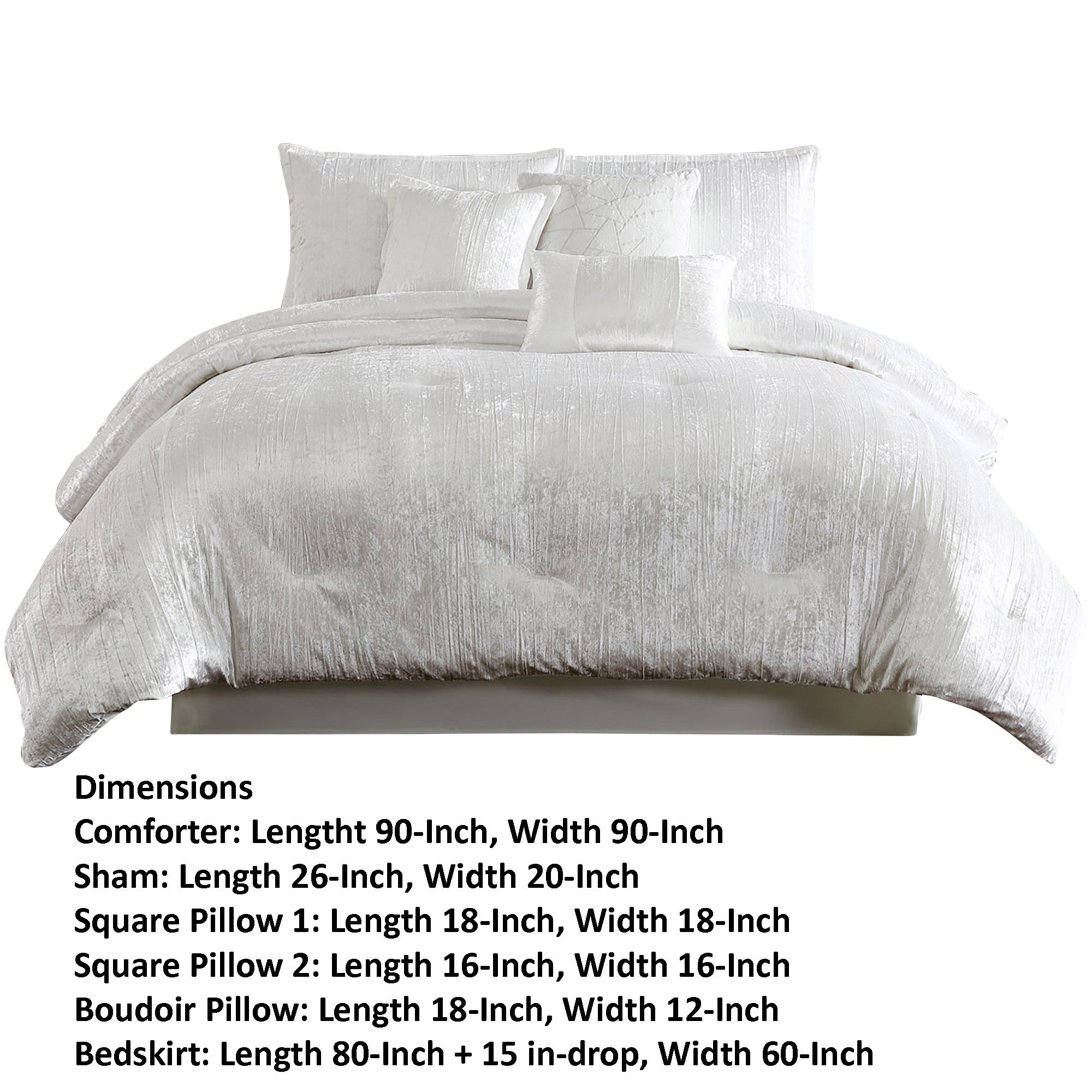 Jay 7 Piece Queen Comforter Set White Polyester Velvet Deluxe Texture BM283890 - Benzara