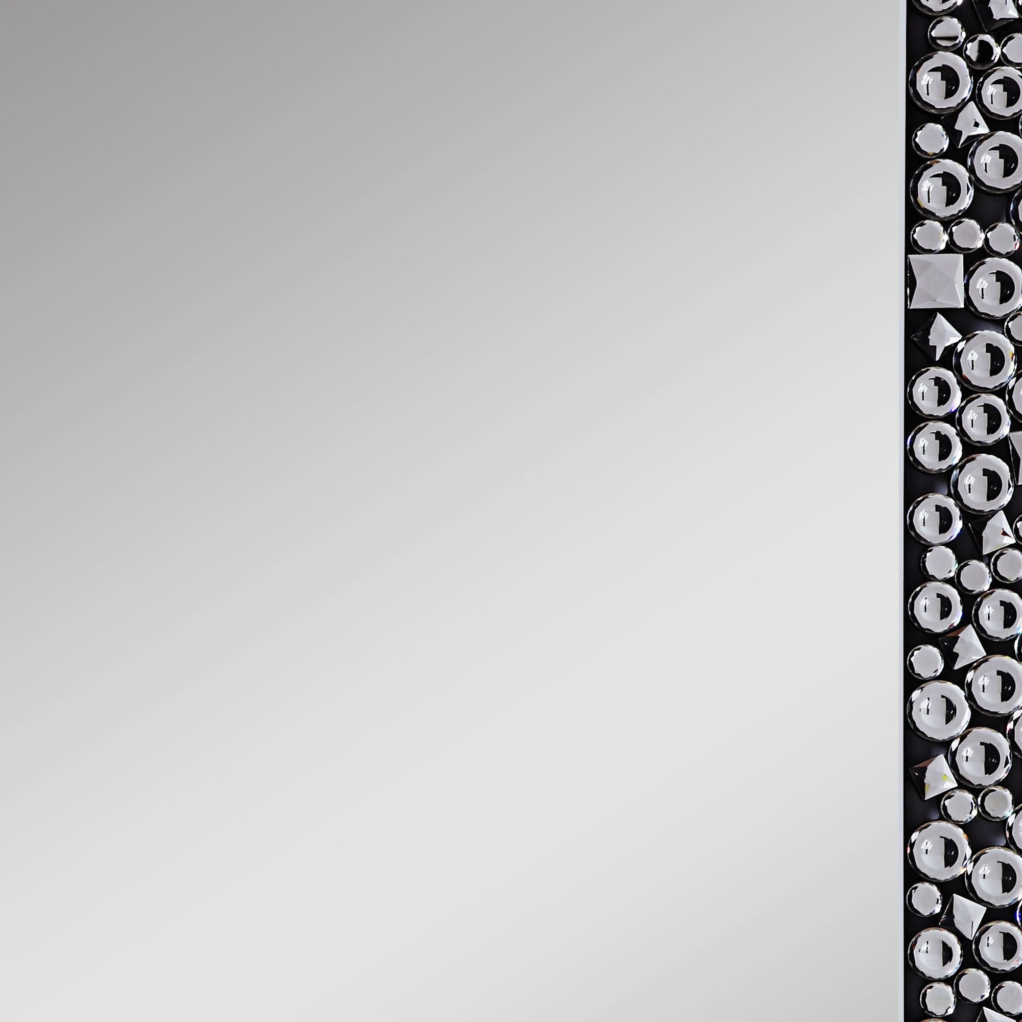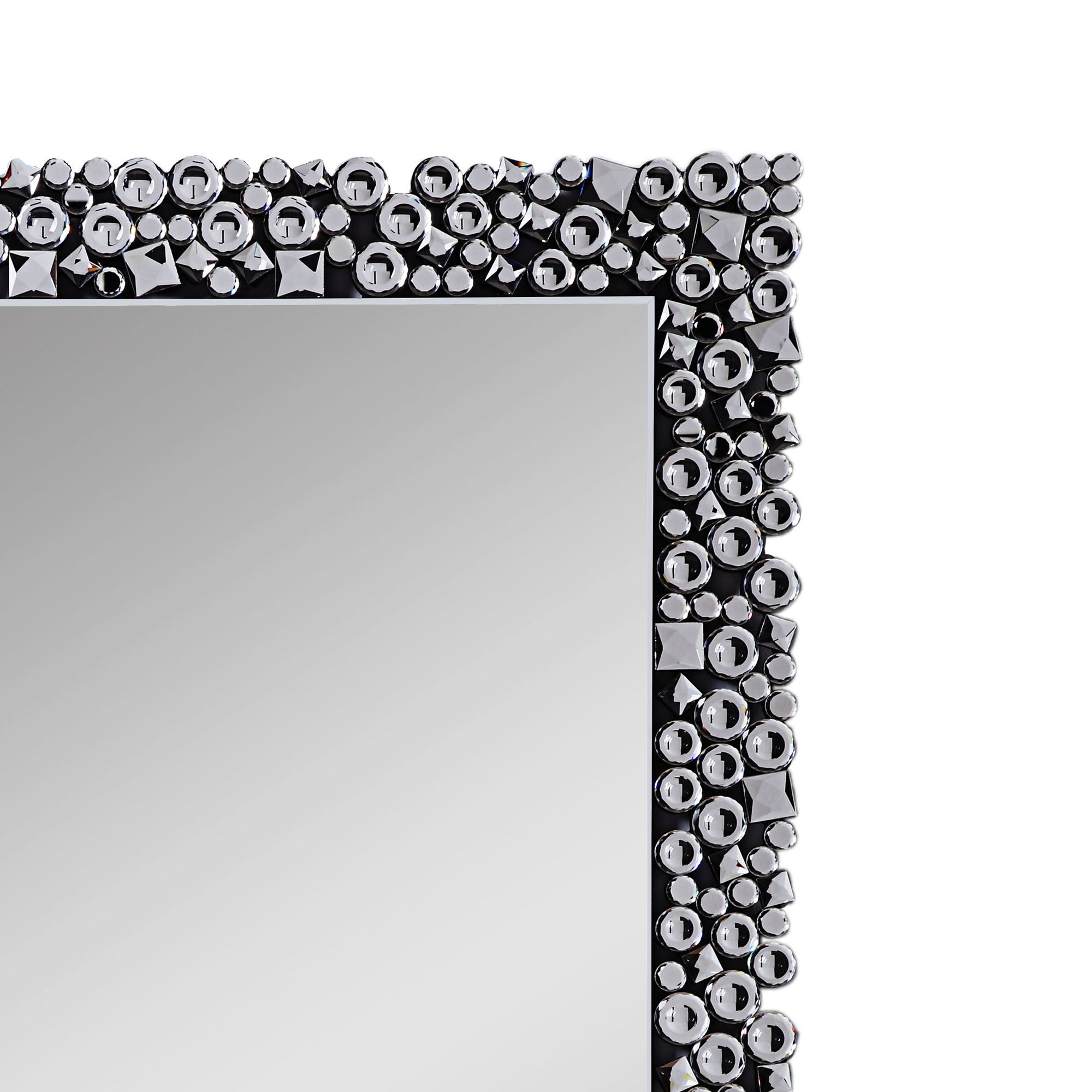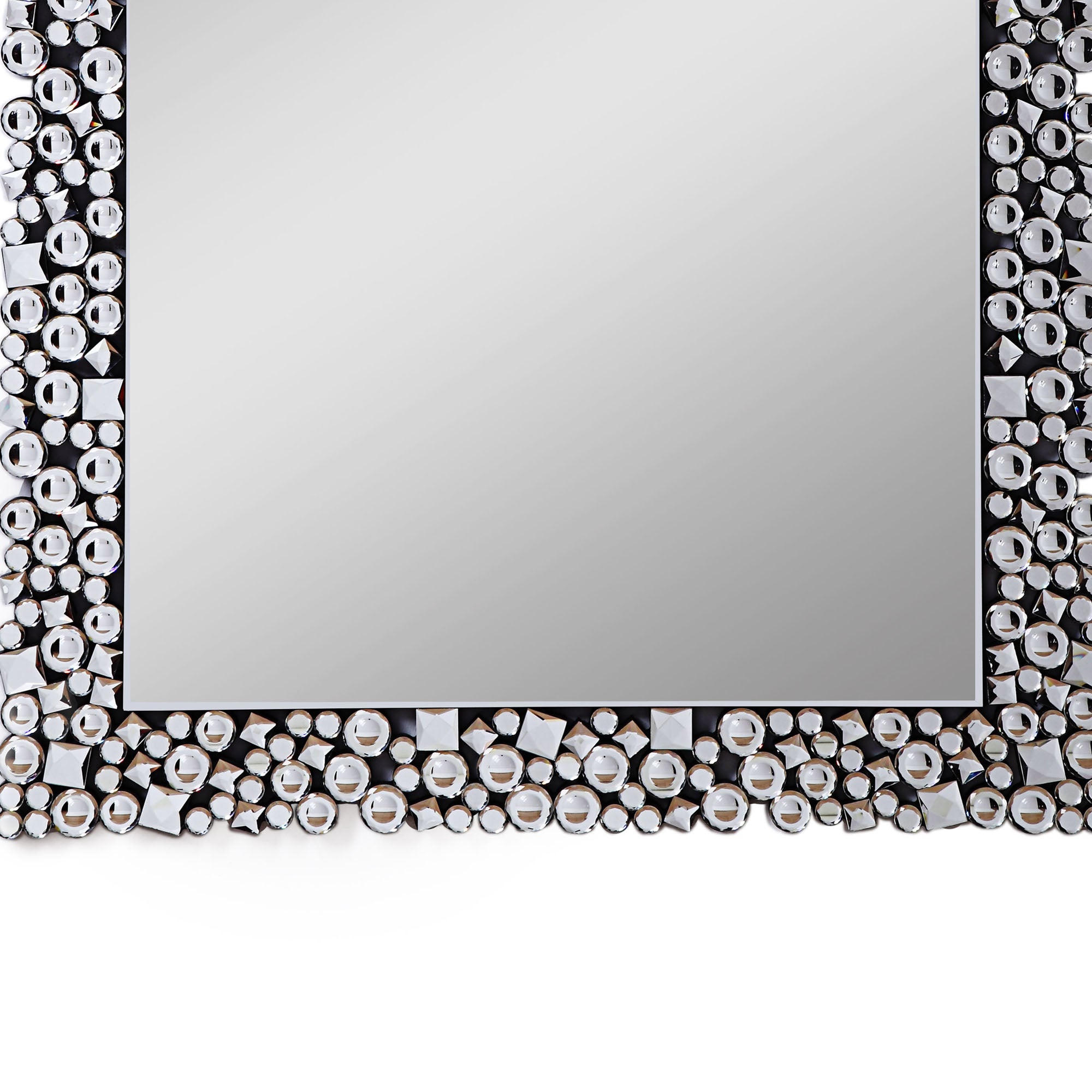 Let the bright light bounce around and add style to your space with this Accent Wall Decor. The frame of this wall decor is rendered from durable Composite Wood and it features a bold black finish. Covering the border are a number of round and square faux crystals, providing a winking counterpoint to the mirrored center. Place this wall decor above an entryway console or use it as an alternative to a bathroom vanity. Note: Other featured items in image except this wall decor are sold separately.