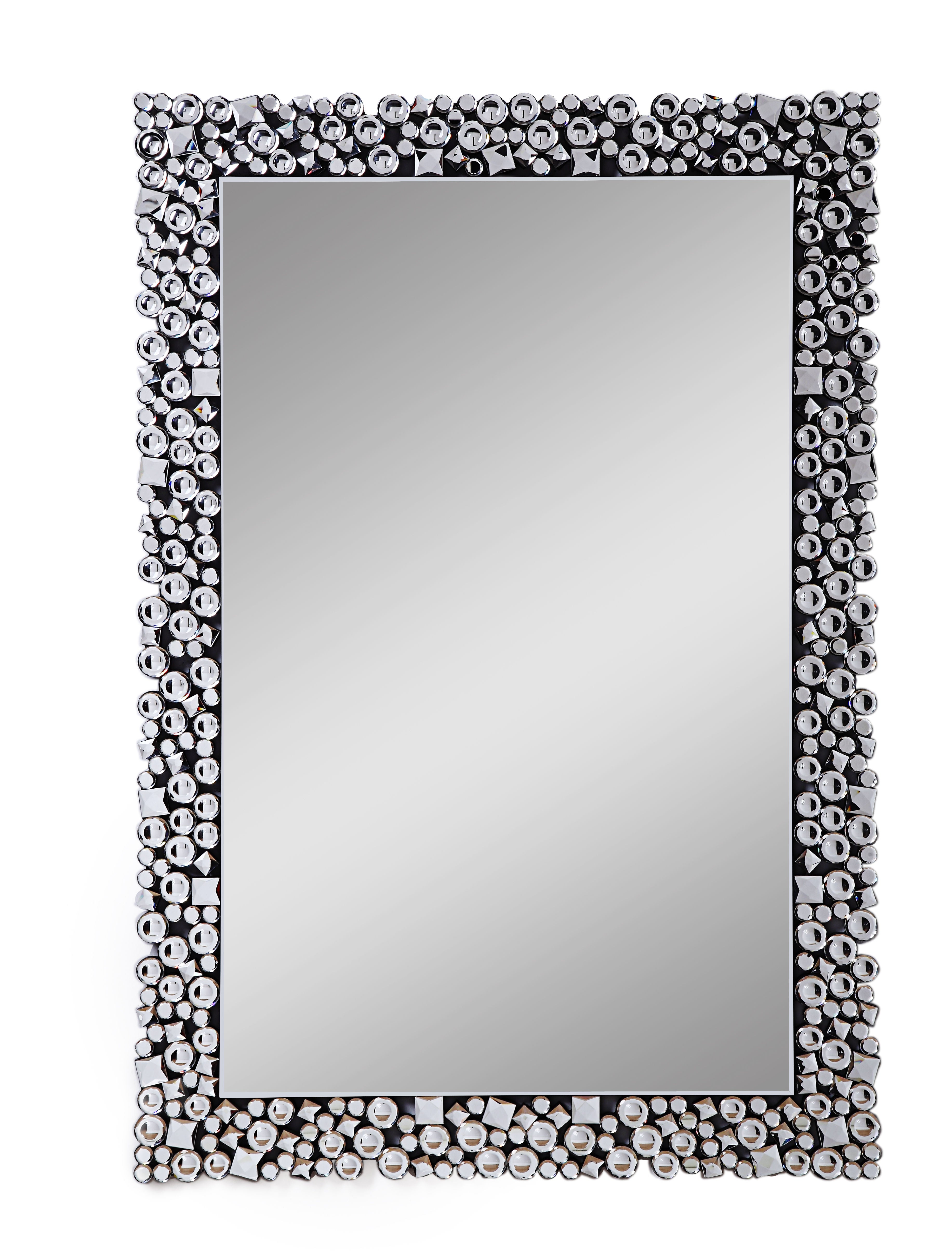 Product Specs: Material: Mirror, Faux Crystals and Composite Wood