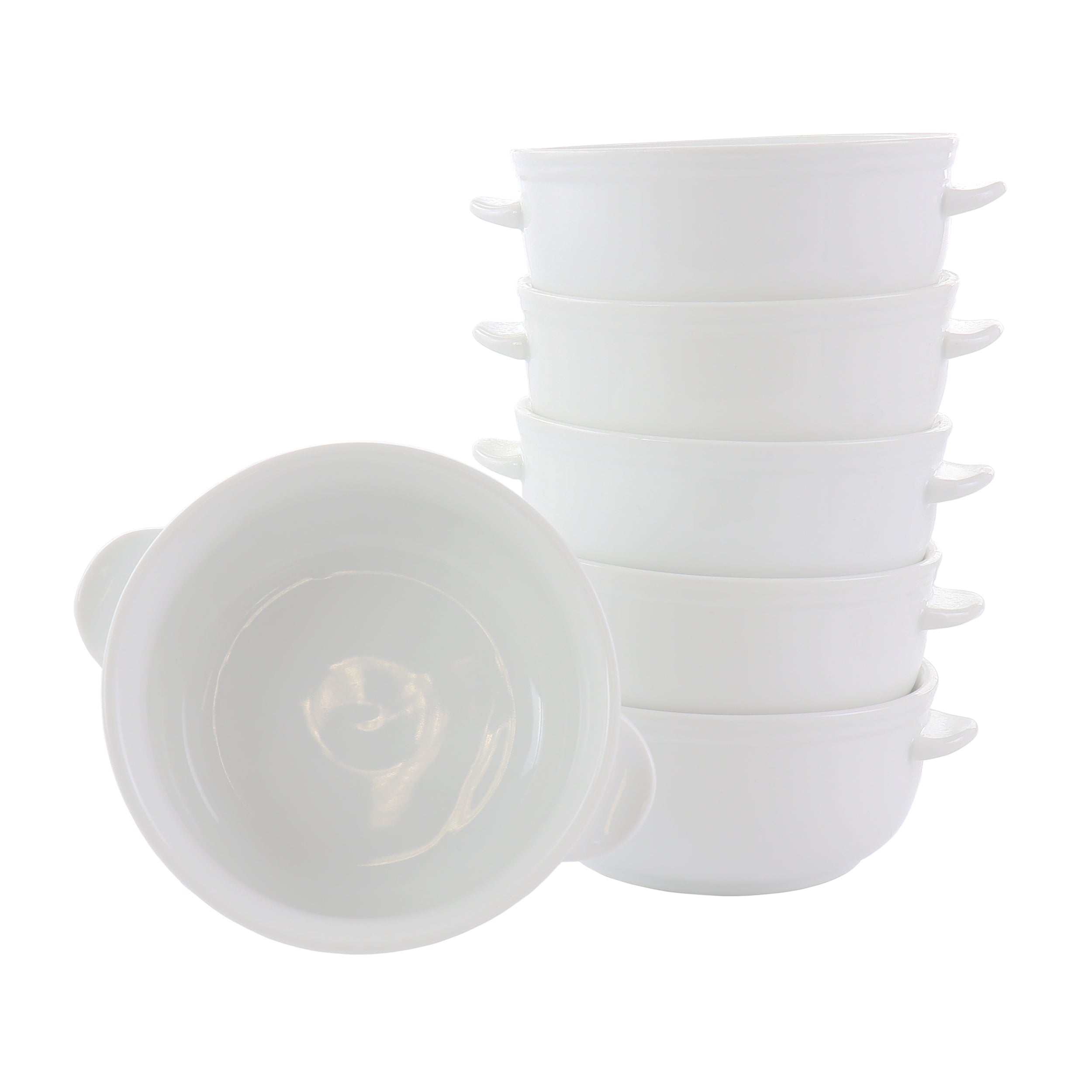 Our Table Simply White 6 Piece 5.5 Inch Porcelain Double Handle Bistro Bowl Set