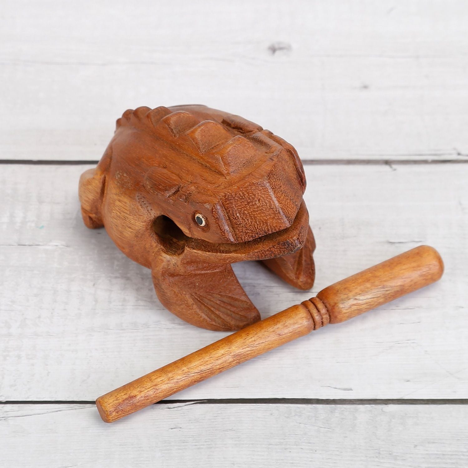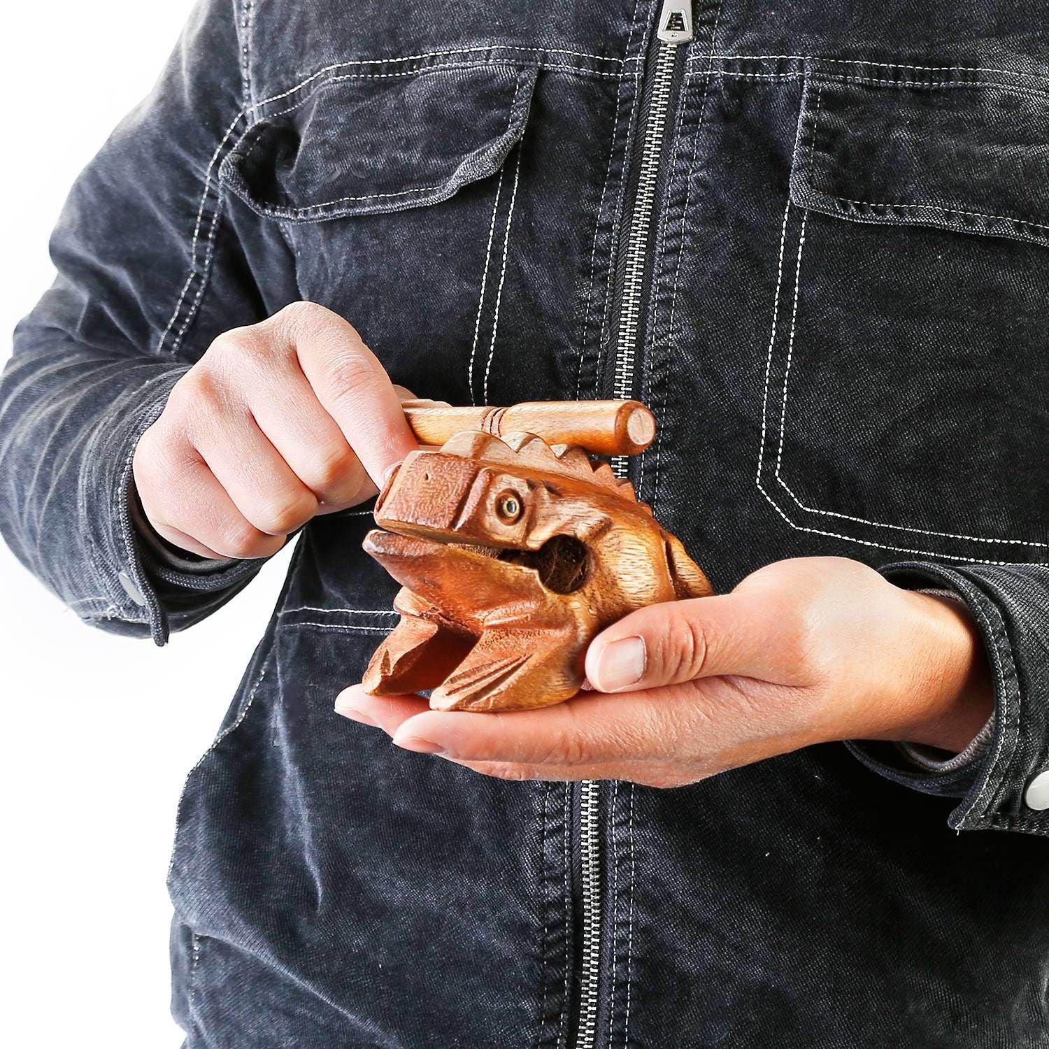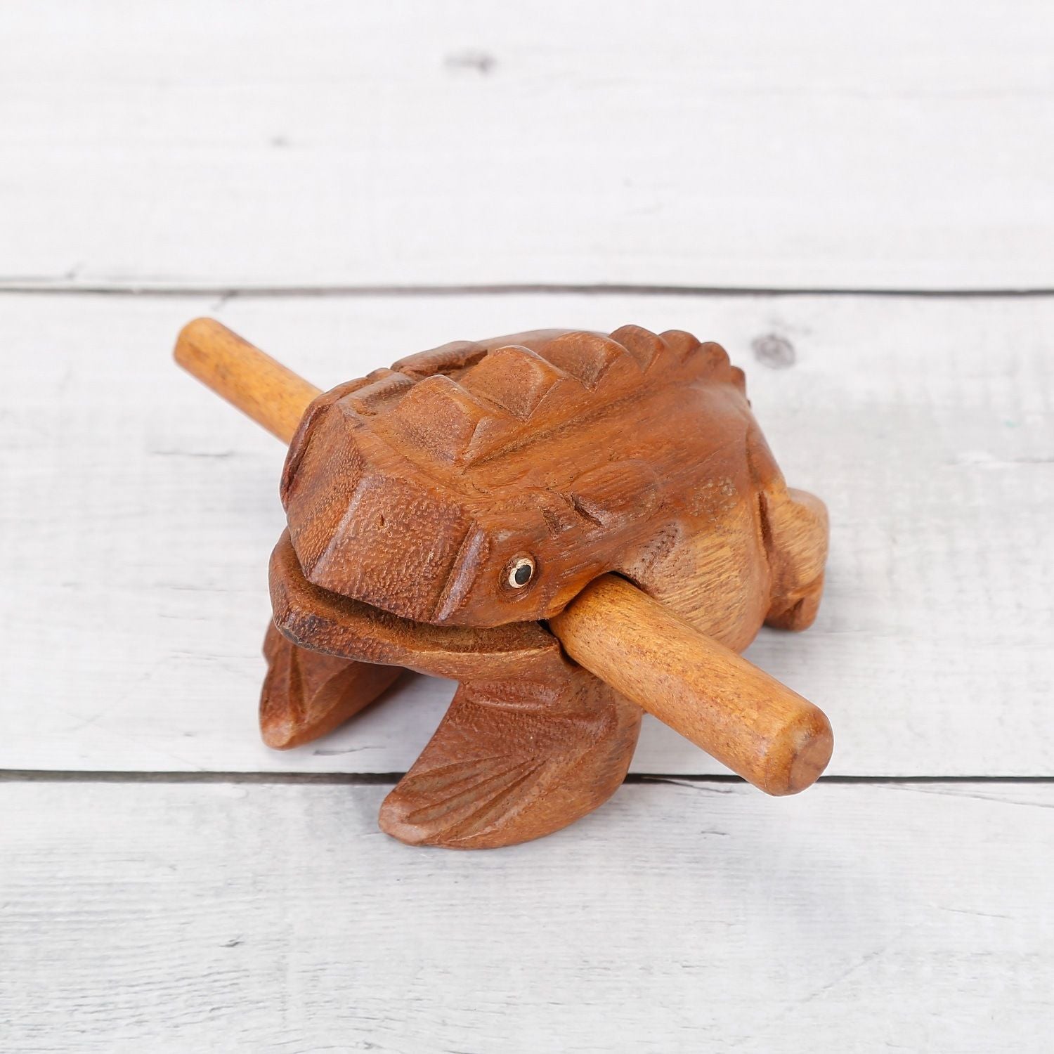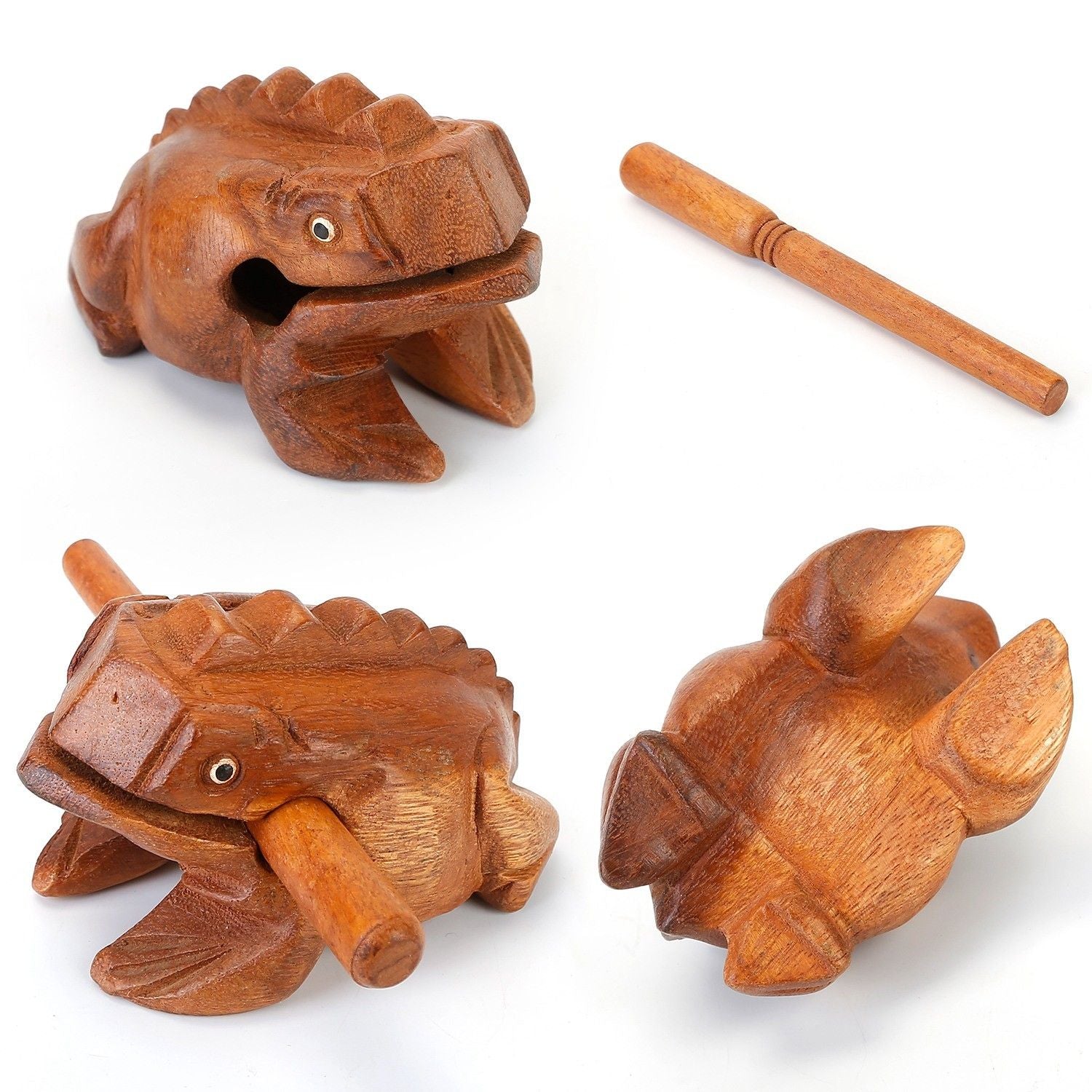 *4 inch medium size to fit well in hand Crafted from mango wood with good workmanship Produces loud sound that resemble that of a croaking frog Store the mallet in the mouth of frog when not in use Instruction*:Lightly and slowly brush the spine of the frog from back to front with the mallet; sound of different pitch will be heard through different part of spine. Tapping on the nose also produces a "wood block" instrument sound that is also nice and loud *Specifications*: