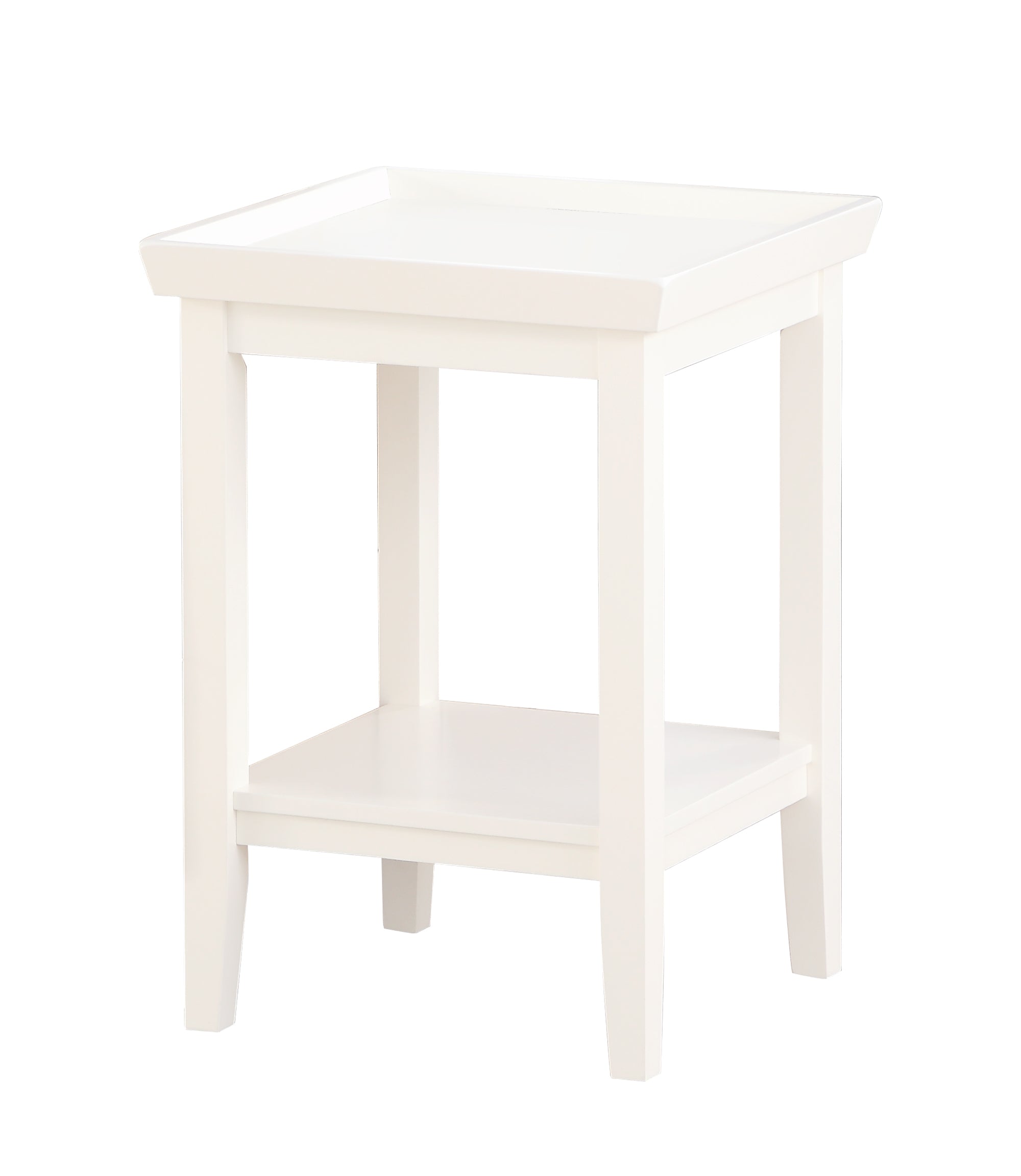 The simple yet charming look of the Ledgewood End Table offers a practical solution for any home. Beautifully crafted from solid rubberwood this piece will stand up to any occasion. The tray like table top with raised edges will keep all of your belongings safely and securely on the table without any worries of broken clocks lamps or any other fragile items you may keep. Also featuring a bottom shelf for additional storage and display you can showcase your favorite collectibles or add a basket to neatly organize remote controls for any media or gaming consoles. Clean lines paired with a classic tapered leg give this piece a timeless look. Look for other items from the Ledgewood Collection by for the complete look separately.