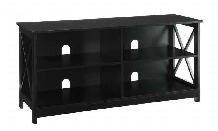 Give your home a handsome makeover with the Oxford TV Stand. Featuring four separate compartments allows plenty of storage space for any TV gaming or media needs. Also featuring cable management holes. The X pattern creates a modern appeal with clean lines. Available in multiple finishes this piece will easily complement any home decor. Look for other items from the Oxford Collection for the complete look sold separately.