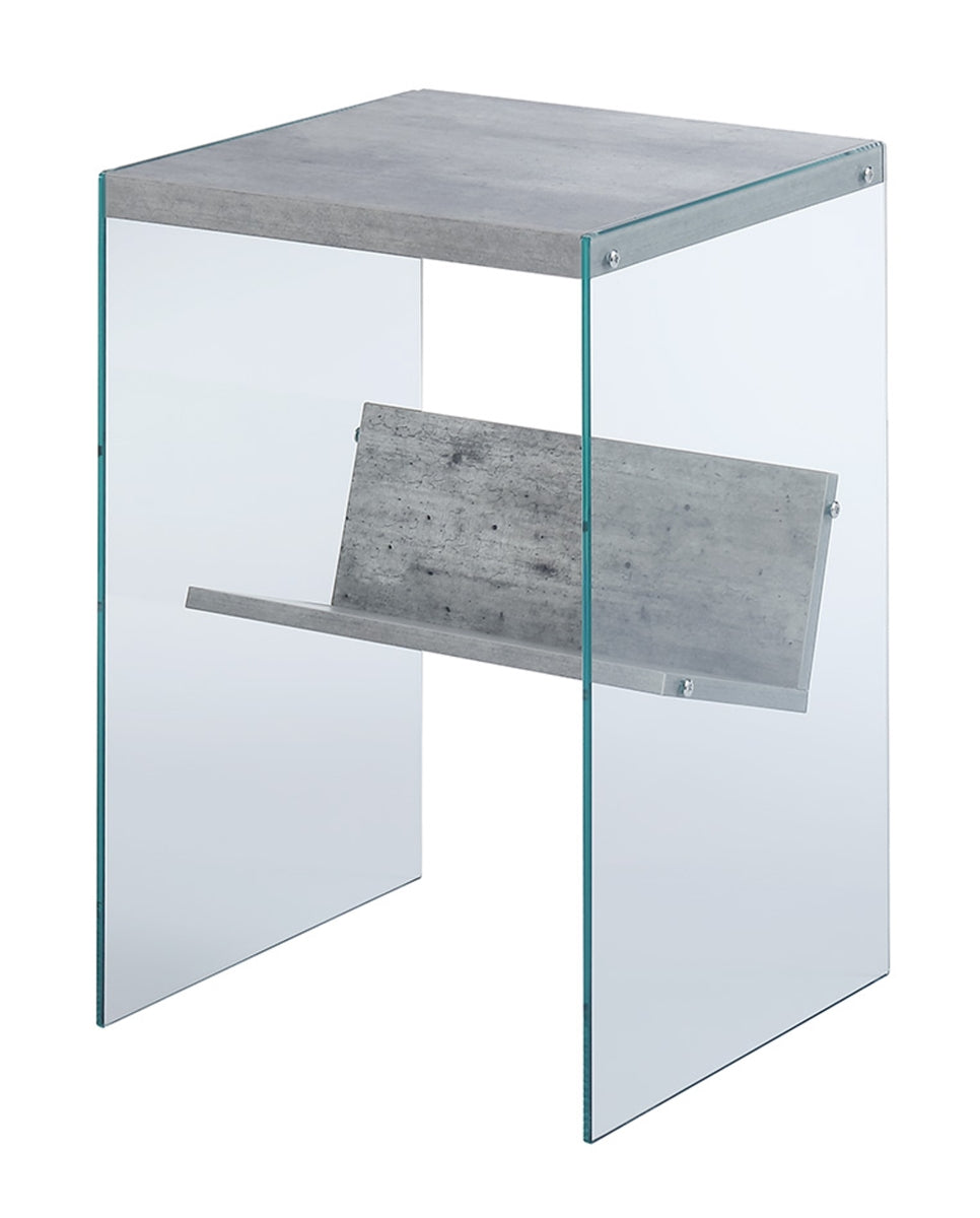 This piece is constructed with tempered side glass and thick faux birch finish top surface to hold photos or lamps