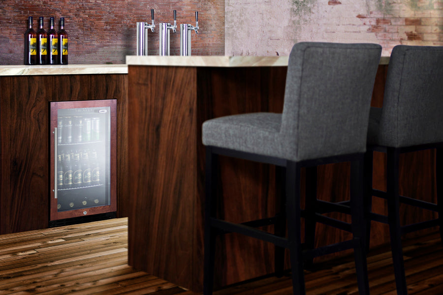 SUMMIT's selection of built-in undercounter beverage coolers combines user-friendly convenience with elegant style for an ideal fit in any setting.The SCR1841BPNRADA is an 18'' wide all-refrigerator designed for use in residential settings. At 32'' high, this unit is designed to fit under lower ADA compliant counters. The front-breathing system allows built-in installation, while the fully finished black cabinet also allows freestanding use. The glass door features a panel-ready stainless steel door trim that lets you customize the look to best match adjacent cabinetry (panel dimensions: 27 5/8'' H x 17 3/8'' W at 3/4'' minimum thickness). NOTE: this unit ships with a right hand door swing. For a left hand version, add option LHD. Users provide their own handle. Items can be stored on four adjustable chromes shelves in the auto defrost interior, with attractive LED lighting providing an elegant display. The digital thermostat offers intuitive temperature management. The SCR1841BPNRADA can be paired with our matching wine cellar, see the SWC1840BPNRADA. For this unit in a counter height, see the SCR1841BPNR. Note: Panel is not included. The images provided are meant only to be suggestive of what the product with a wood panel installed could look like. Users must supply their own wood panel.