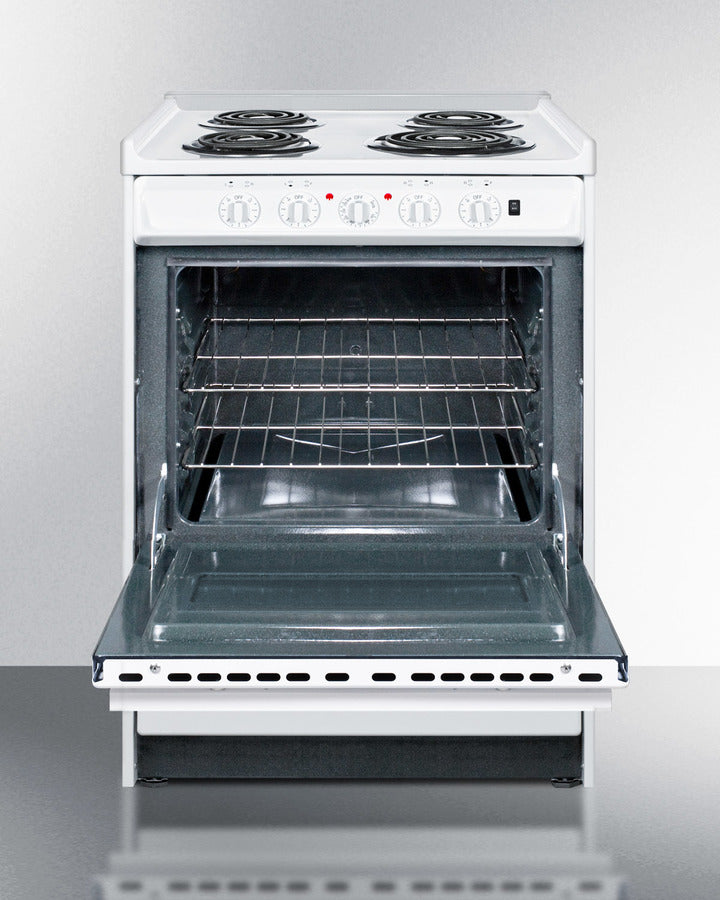 Burner knobs require a small amount of force to turn on for added protection against accidents; oven knob is not push-to-turn