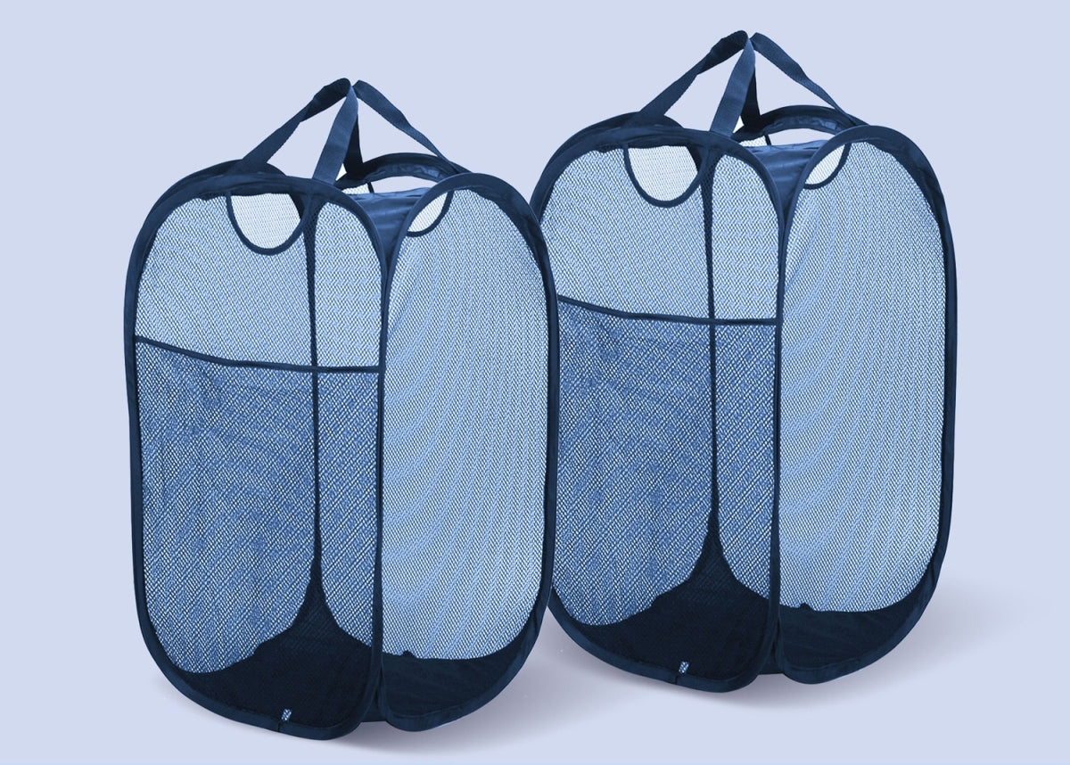 2 pack laundry Hamper basket include side pocket, Dark Blue color. Easy to carry and foldable. You can use it indoor or outdoor anywhere you want.