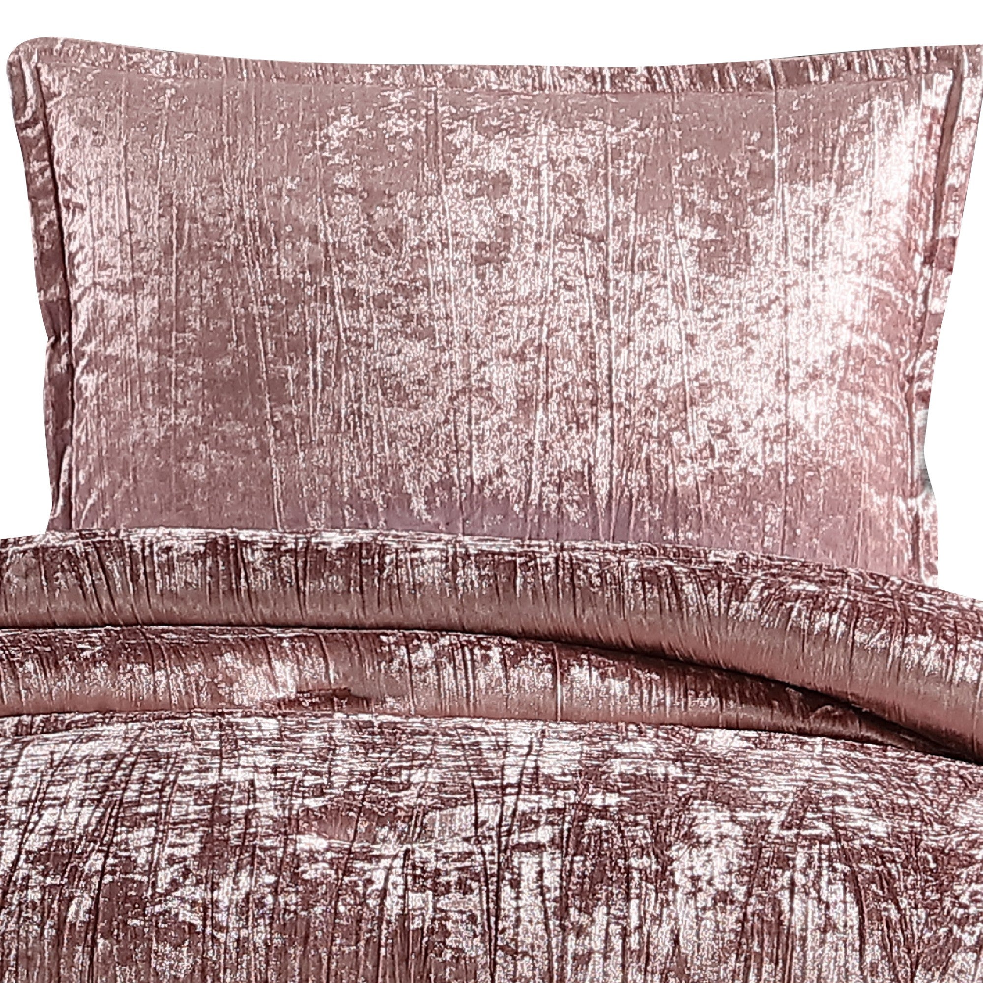 With a lovely and luxurious style, this two piece twin size comforter set makes a beautiful fit for your kids room, dorm, or guest bedroom. The pink polyester velvet fabric has brushed backing, and the polyfill inserts add enhanced warmth and coziness to your bed while the crinkle textures give the top a unique, sleek feel. Check out our Jay collection for more options in size and color.